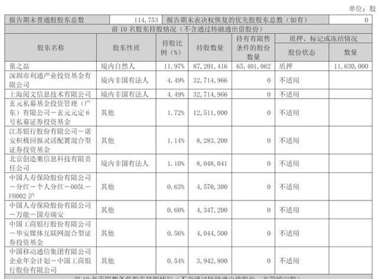 截至2025年3月31日,童之磊持股11.97%,深圳市利通产业投资基金有限公司持股4.49%,上海阅文信息技术有限公司持股4.49%,玄元私募基金投资管理(广东)有限公司-玄元元定6号私募证券投资基金持股为1.72%,江苏银行股份有限公司-诺安积极回报灵活配置混合型证券投资基金持股为1.14%,北京创造栗信息科技有限责任公司持股为1.1%,中国人寿保险股份有限公司-分红-个人分红-005L-FH002 沪持股为0.63%,中国人寿保险股份有限公司-万能-国寿瑞安持股为0.6%;